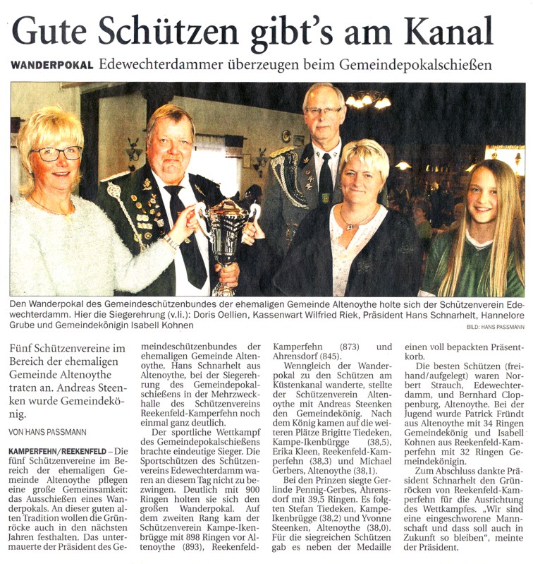 mit den Schützenvereinen: Ahrensdorf, Altenoythe, Edewechterdamm, Kampe-Ikenbrügge, Reekenfeld-Kamperfehn