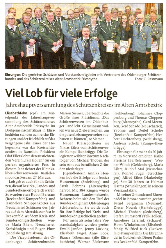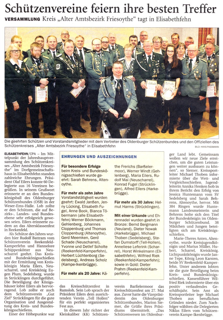 Mitgliederjahreshauptversammlung 02.02.2018 in Elisabethfehn |