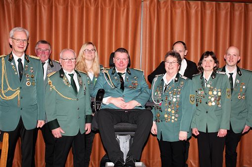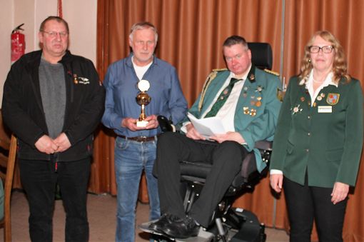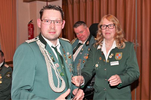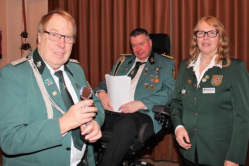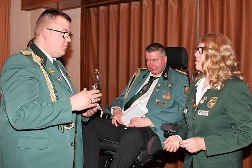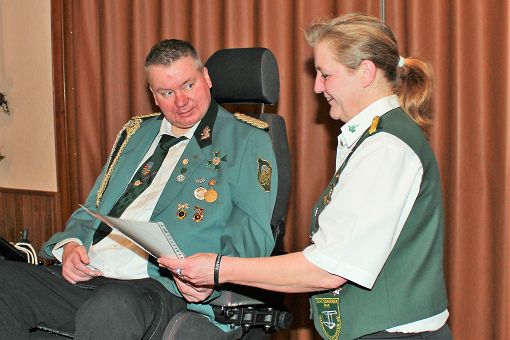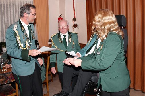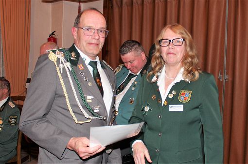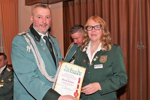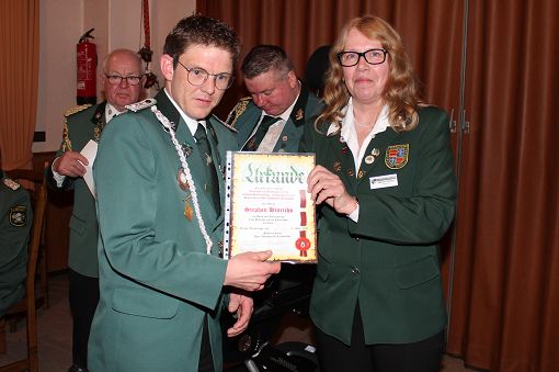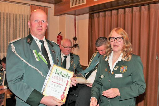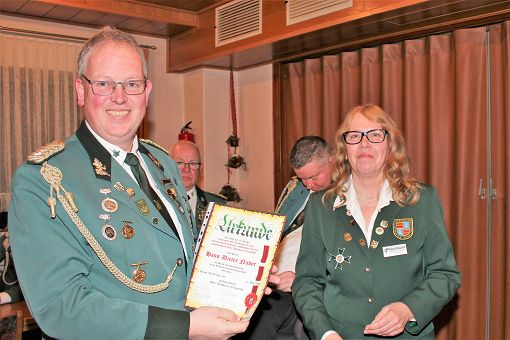 mit einer Urkunde und Ehrennadel geehrt werden: