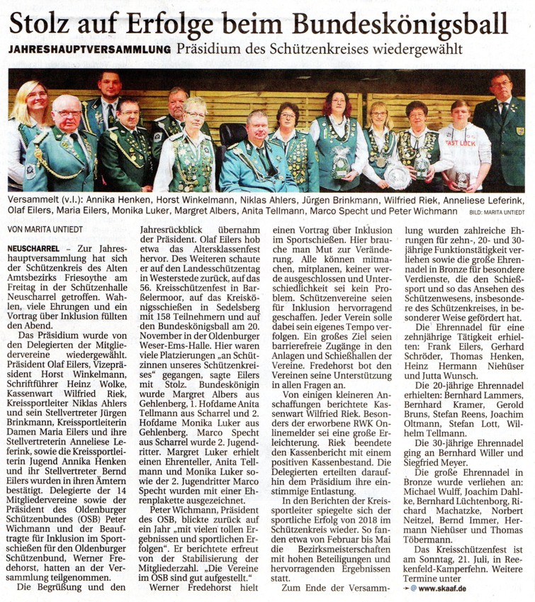 Mitgliederjahreshauptversammlung 01.02.2019 in Neuscharrel |