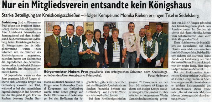 Kreiskönig 2005/2006 wurde Holger Kempe vom Schützenverein Sedelsberg |