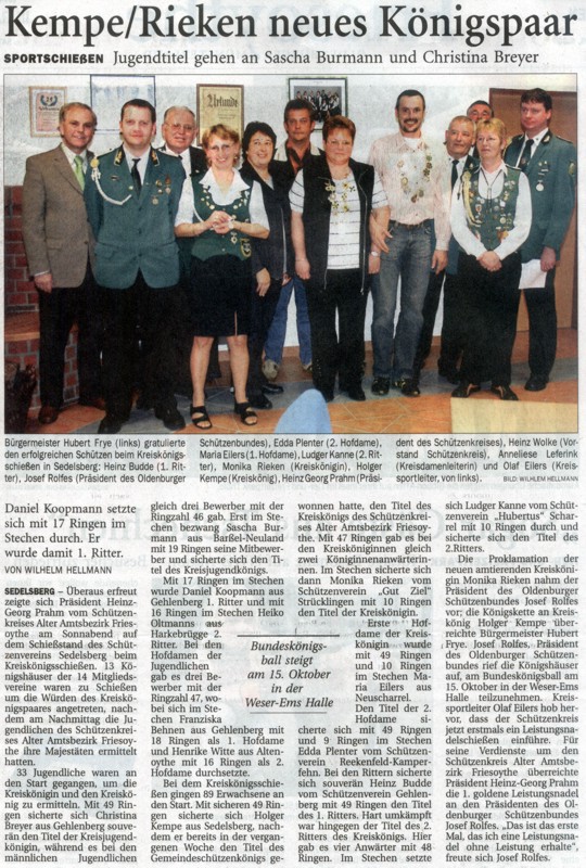 Kreiskönigin 2005/2006 wurde Monika Rieken vom Schützenverein Gut Ziel Strücklingen |