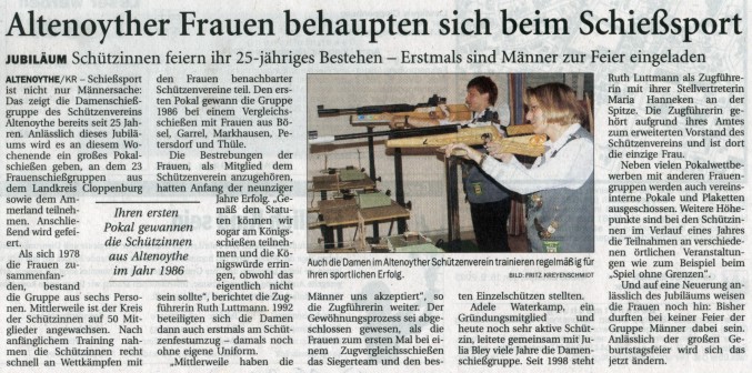 (zurück zum Pressespiegel) (zurück zum Seitenanfang) (zurück zu Damenschiessgruppe)
